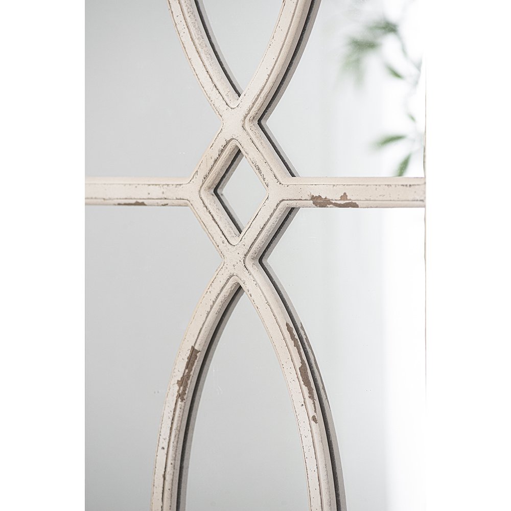 The DesignThis set of two carved accent mirrors is sure to capture the gaze of your guests with their intricate curved motifs and distressed white finish. Whether they are displayed as a pairing or separated, the unmatched blend of modern and rustic charms will embellish the decor in your entryway, living room, foyer, or bedroom.