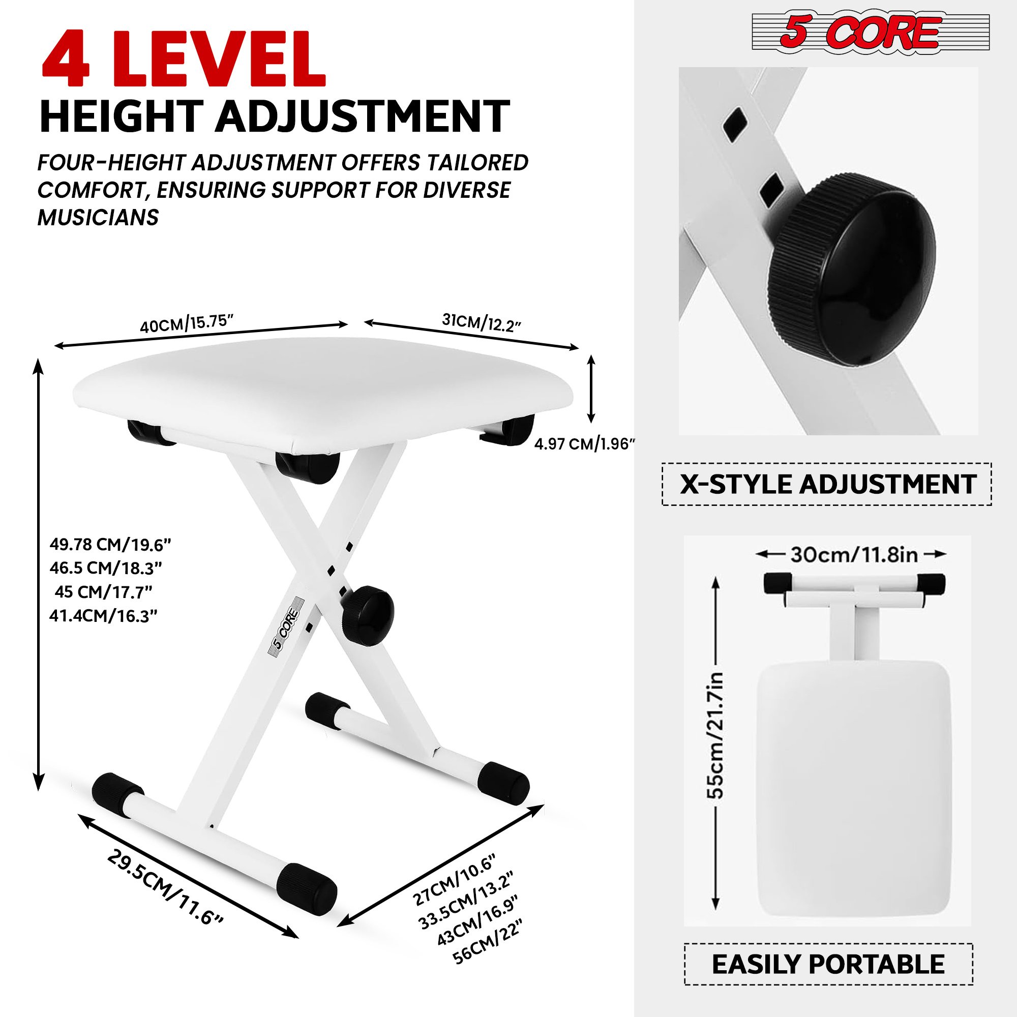 5 Core Keyboard Bench X Style Piano Stool Thick Padded Seat 16.3 to 19.6 inch Adjustable Keyboards Chair White - KBB 02 WH