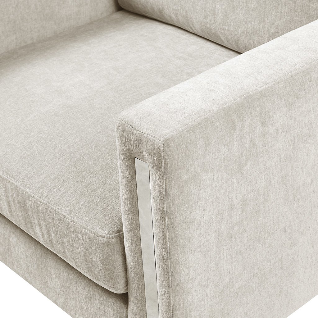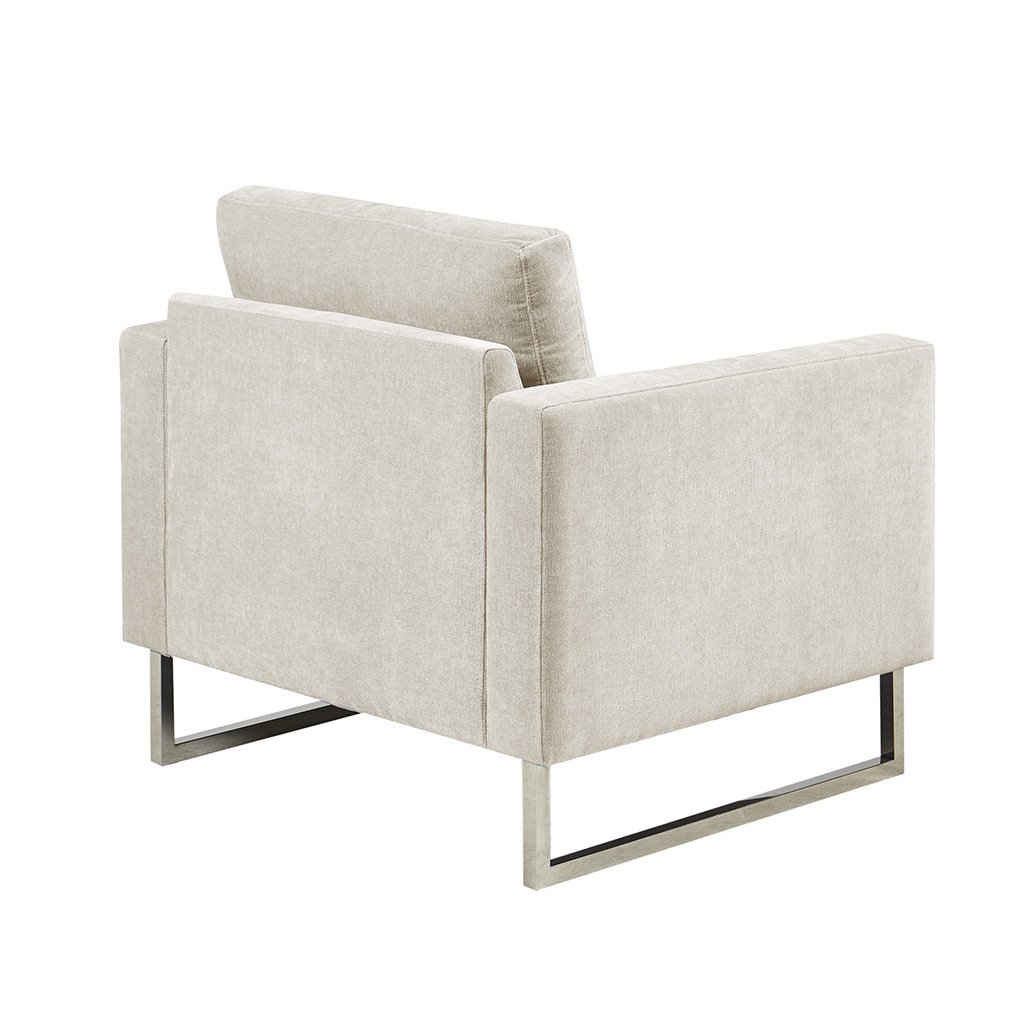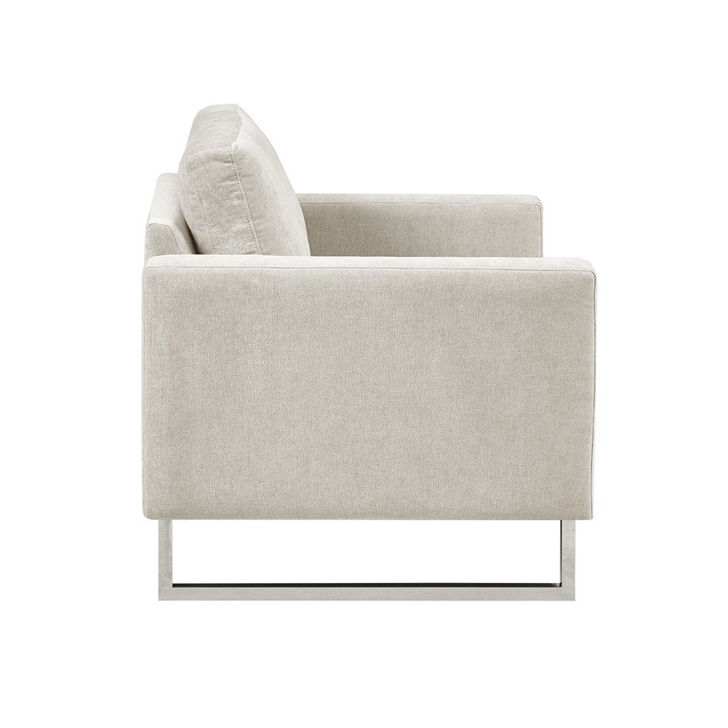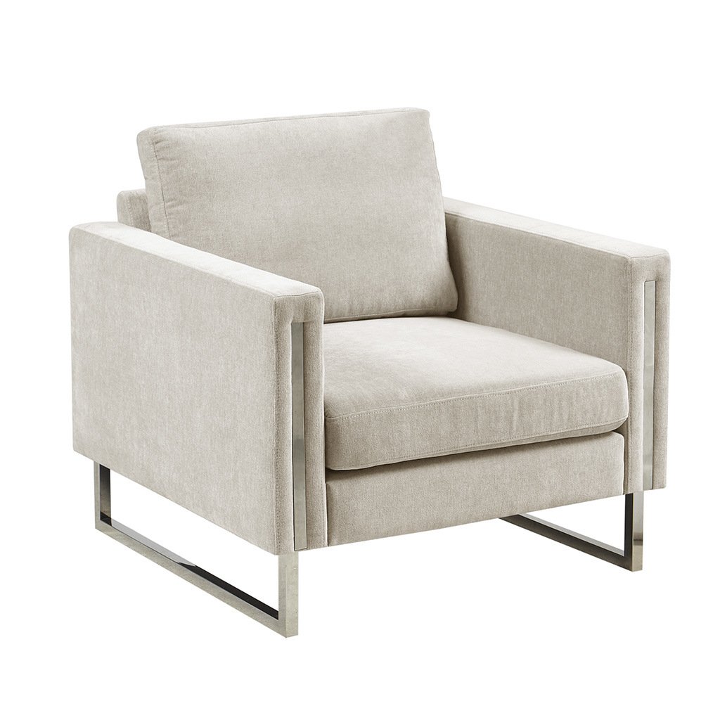 DescriptionGive your space a lavish update with the INK+IVY Madden Accent Chair. Featuring high track arms and thick removable cushions, this accent chair is upholstered in a soft color hue fabric that creates a luxurious seating experience. The chrome plated frame and legs provide exceptional support, while also adding a touch of elegance. Strikingly beautiful, this accent chair is sure to make a statement in any room of your home. Leg assembly required.Product DetailsSee below1 Accent Chair:33"W x 31"D x 30.5"HSeat Dimension:24"W x 21"(25.5" not including back cushion)D x 17.5"HSeat Cushion Thickness:6"Arms Size:24"W x 24"HLegs Height:6.5"HBack Rest Size:24.25"W x 13"HMaximum Weight Capacity (Seating):300lbsMaterialFrame Composition: Solid wood and plywood frameLeg Material: ChromeArm Material: Solid wood and plywood frameFabric Composition: 100% polyesterCushion or Upholstery Fill Material: FoamBack Fill Material: PolyesterMetal Finish: Chrome