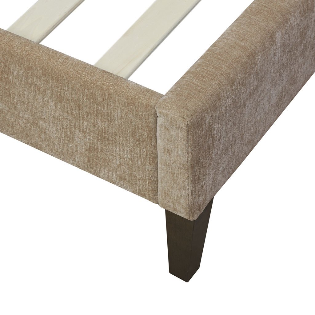 MATERIALHeadboard: Plywood and MDF and Hardwood frame, with polyester foam, fabric 100% polyester 9304-4 Kenley EcruBed frame: 22 x 25 x 1mm metal tube, plywood, with polyester foam, fabric 100% polyester 9304-4 Kenley Ecru14 Slats: Plywood,KD Leg: Rubber wood with dark coffee finishPRODUCT DETAILSKing1 Platform Bed: 86.5" L x 82"W x 47.7"HHeadboard Size: 82"W x 47.7"H x 4"TFootboard Size: 78.75"W x 7"H x 2.2"TSide Rails Size: 81"L x 7"H x 1.25"TInterior Dimensions for Mattress: 76.77"W x 80.7"LClearance Under Side Rails: 6"Maximum Weight Capacity (Sleeping): 600lbs