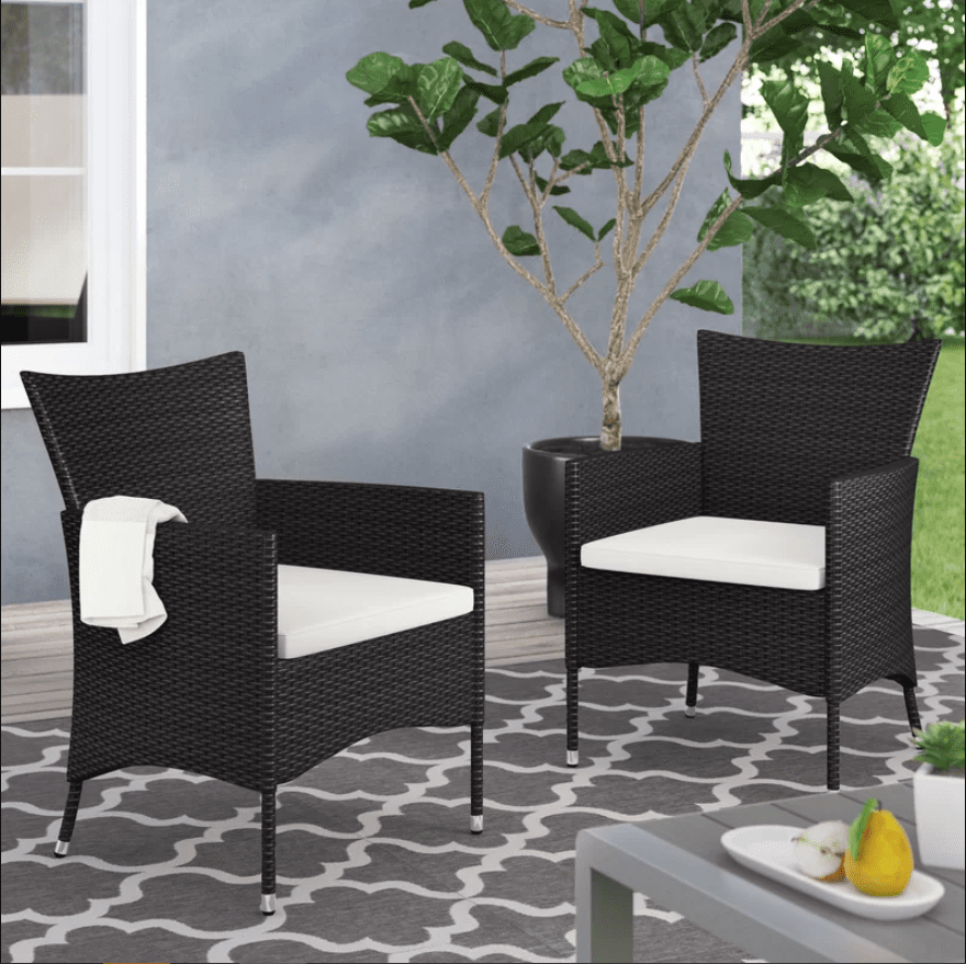 The Clementine Outdoor Brown Wicker Dining Chairs are made out of rich, brown PE wicker that will complement any nearby landscape. The all-weather wicker allows these chairs to last in any weather condition with little maintenance, and the water resistant cushions provide added comfort, and are easy to maintain. These sturdy chairs are also stylish and can be placed together or coordinated with any outdoor dining set.