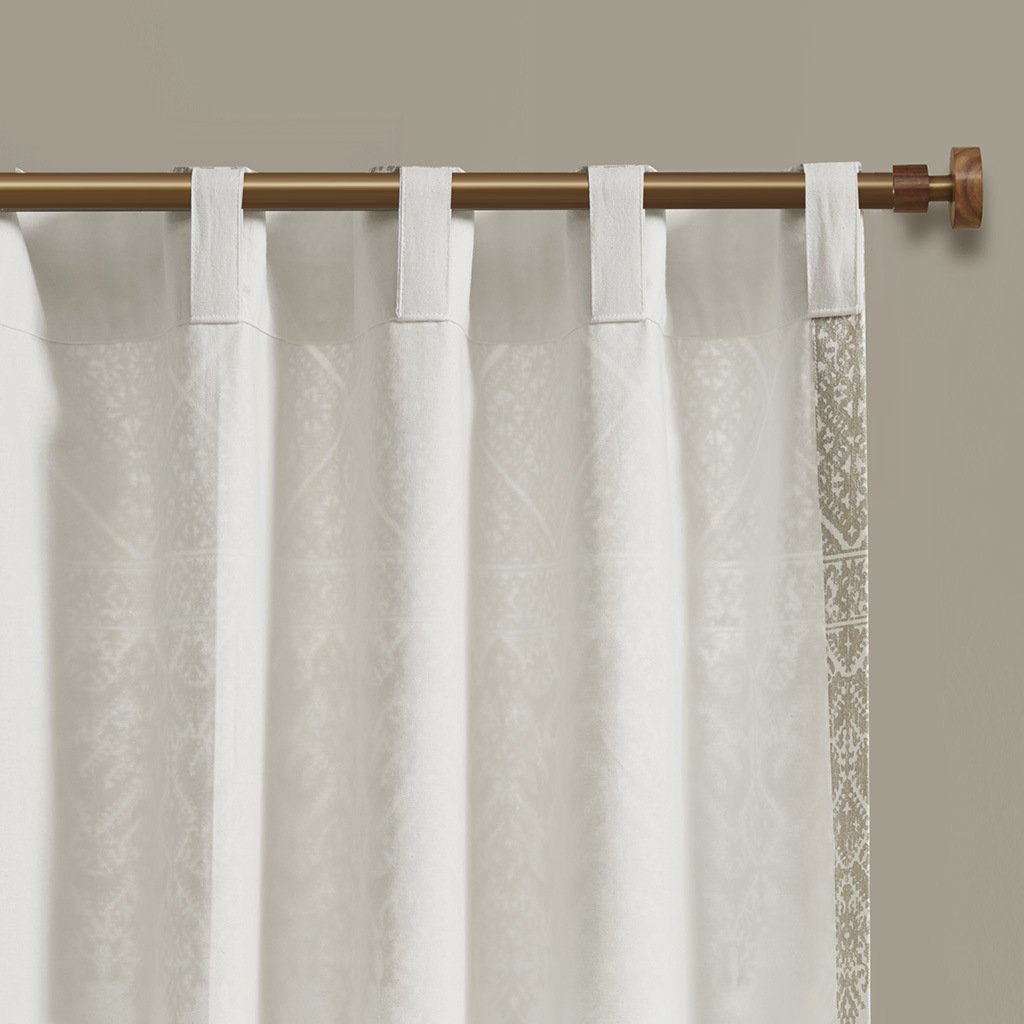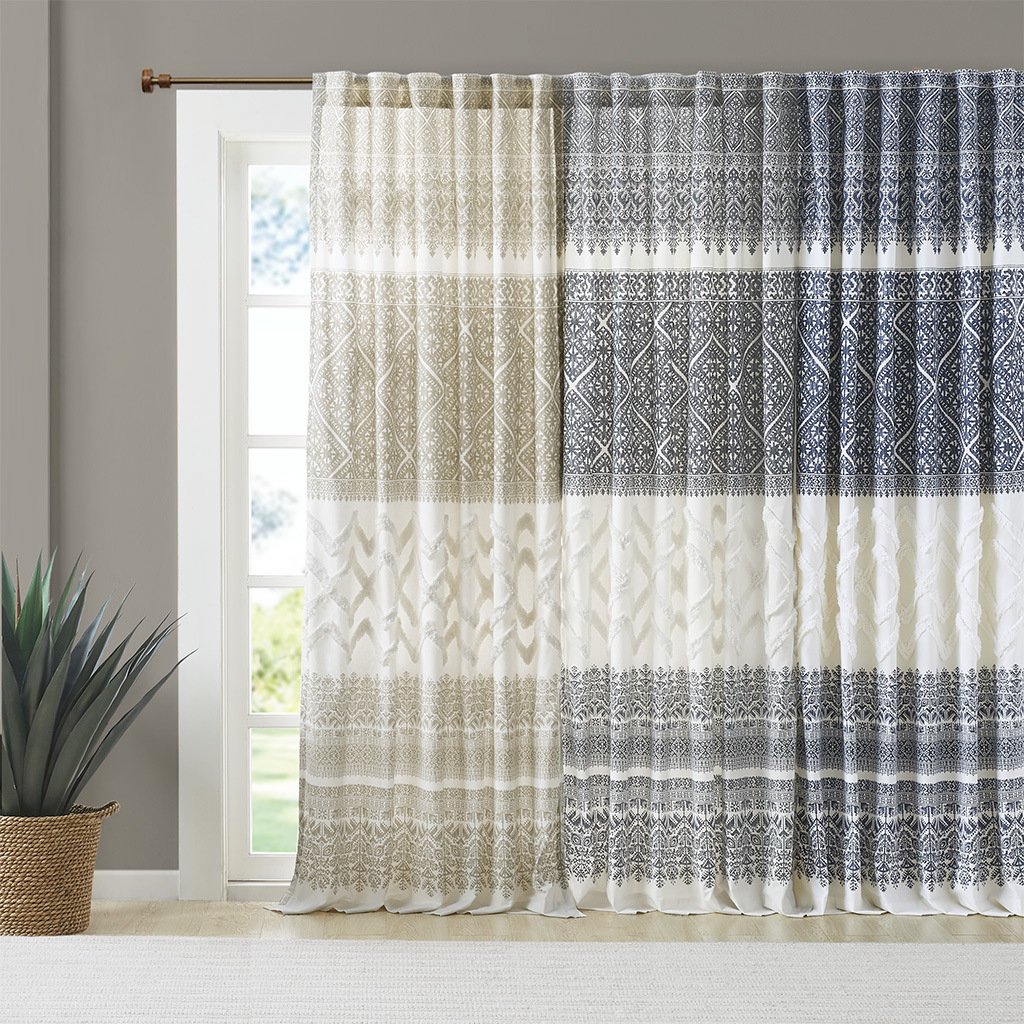 DescriptionThe INK+IVY Mila Cotton Printed Window Panel with Chenille Detail and Lining gives your home decor a chic boho touch. This natural white cotton window panel features an intricate global inspired print combined with rich tufted chenille detailing, for a textured artisanal look and feel. A lightweight white cotton lining on the reverse softly filters light, while providing better drapability and added privacy. In addtition, this 100% cotton curtain panel is also OEKO-TEX certified, meaning it does not contain any harmful substances or chemicals for the best in quality comfort and wellness. Each panel is finished with a rod pocket top for easy hanging, and back tabs for a more clean and tailored finish. This window panel is sold as a single and 2 window panels must be purchased to cover any standard size window. Complete the look with coordinating bedding sets, available and sold separately.Product Details50x84"1 Window Panel:50"W x 84"LMaterial100% cotton, printed and tufted with chenille, with cotton lining on the back. Finished with rod pockets and back tabs; fits up to 1.25 inches diameter rod.