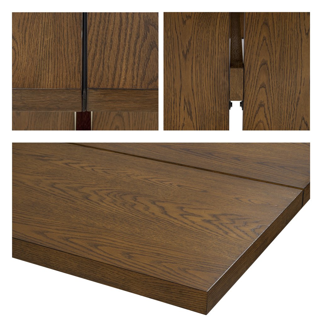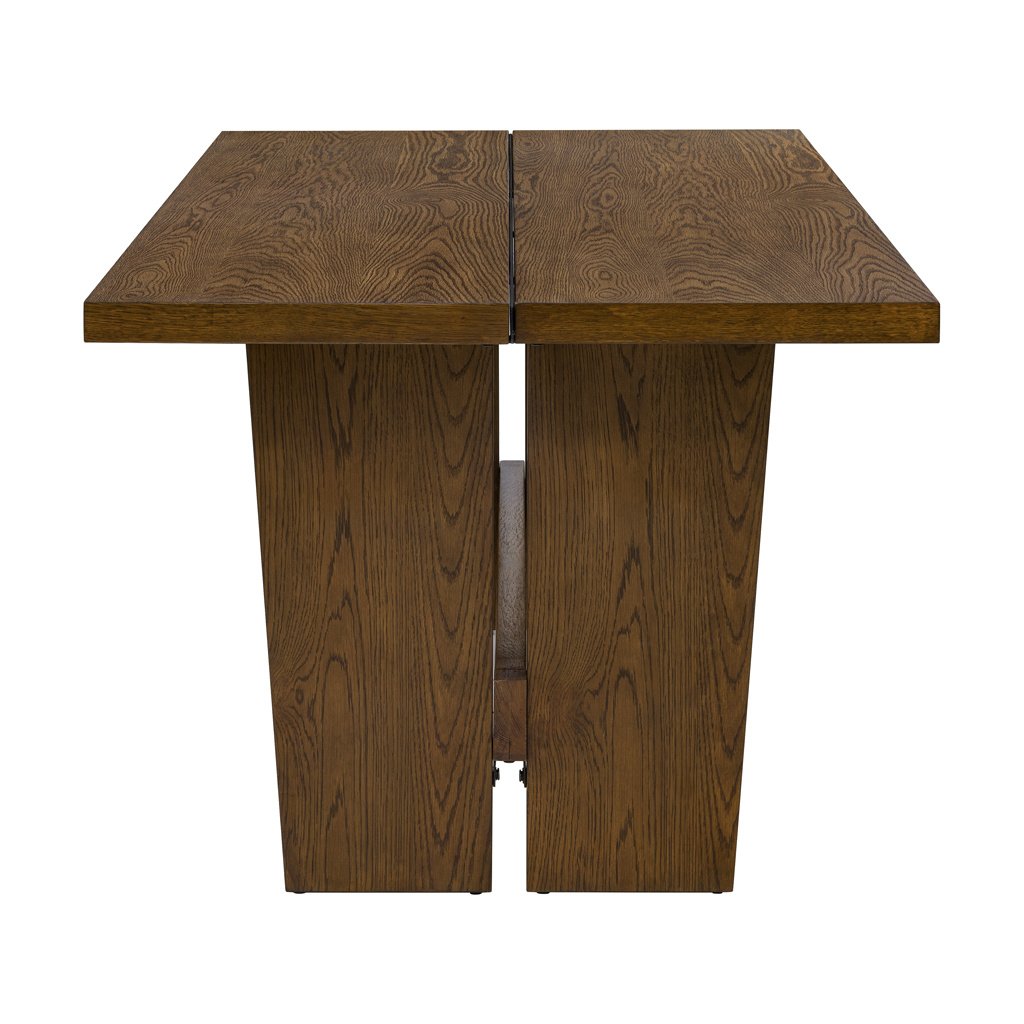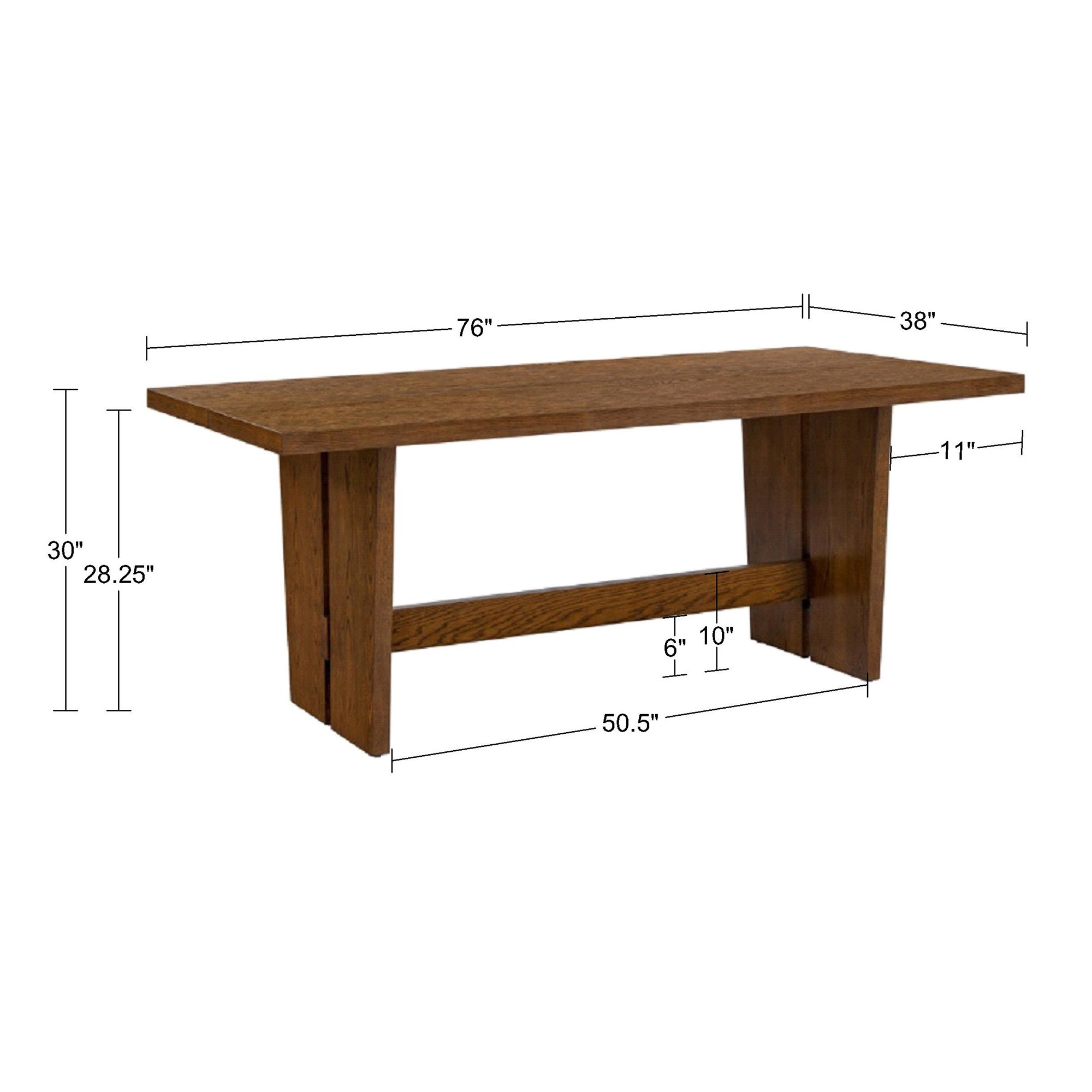 MATERIALTop Material: Metal, wood veneer, MDFBase Material: WoodTop Finish: PecanBase Finish: PecanPRODUCT DETAILSSee belowOverall: 76"W x 38"D x 30"HLeg Height: 28.25"Weight: 132 lbsWeight Capacity: 100 lbsDESCRIPTIONExperience modern rustic style at a remarkable value with the Frank collection. A combination of wood and veneers ensures this piece is handsome, durable and functional. Crafted of solid wood, the dining table strikes a sleek and clean-lined silhouette. Pair it with the coordinating dining bench and chairs (sold separately) to complete your casual dining room look