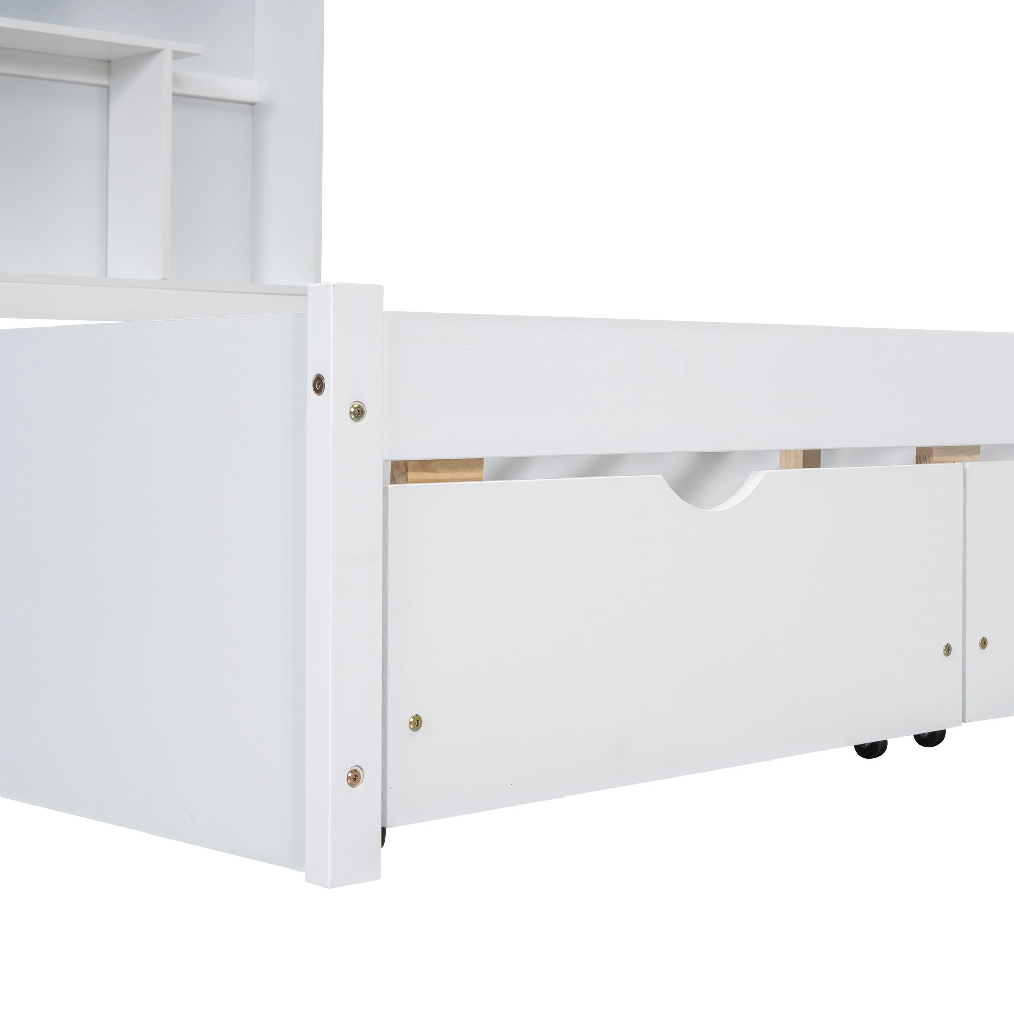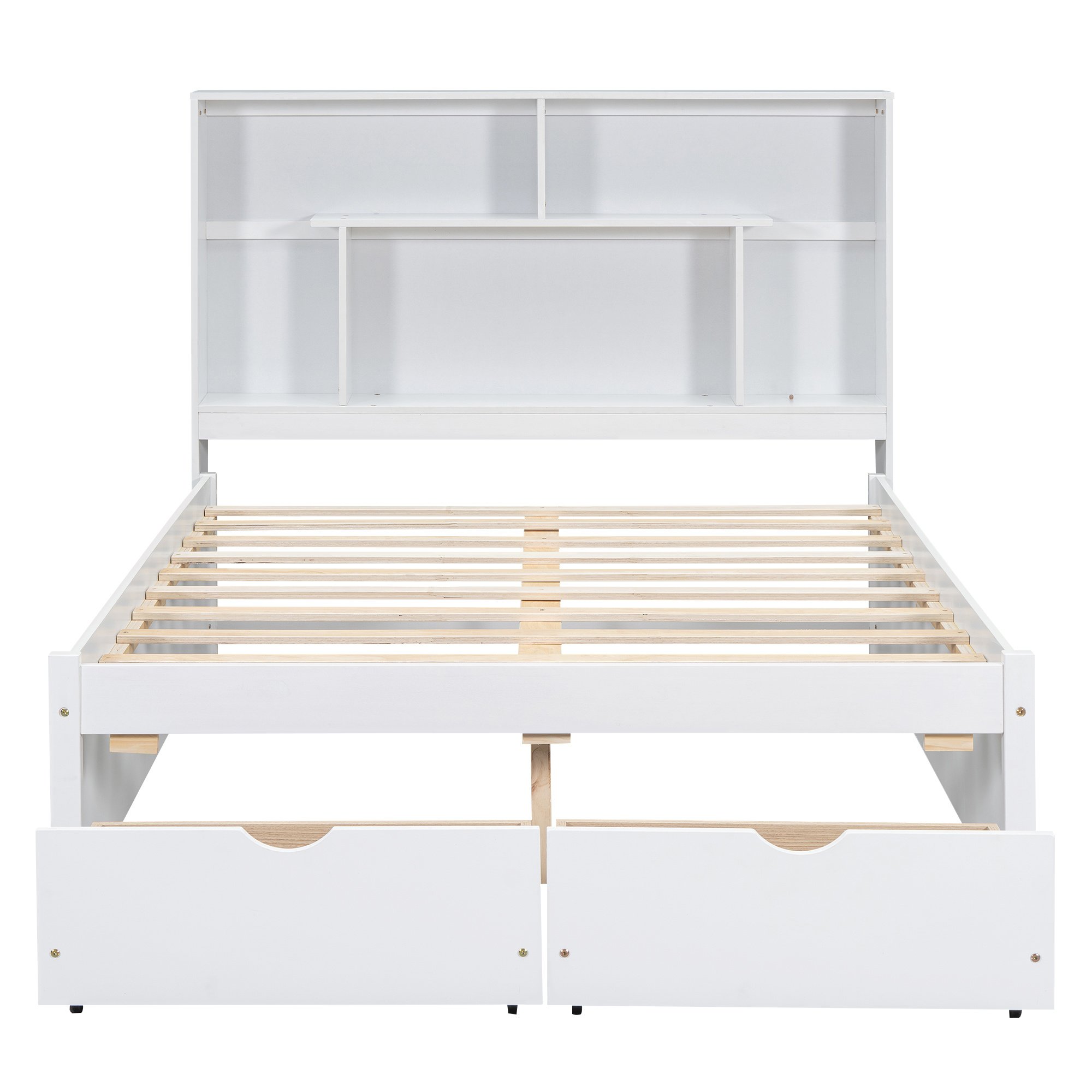 Full Size Platform Bed with Storage Headboard and 2 Drawers