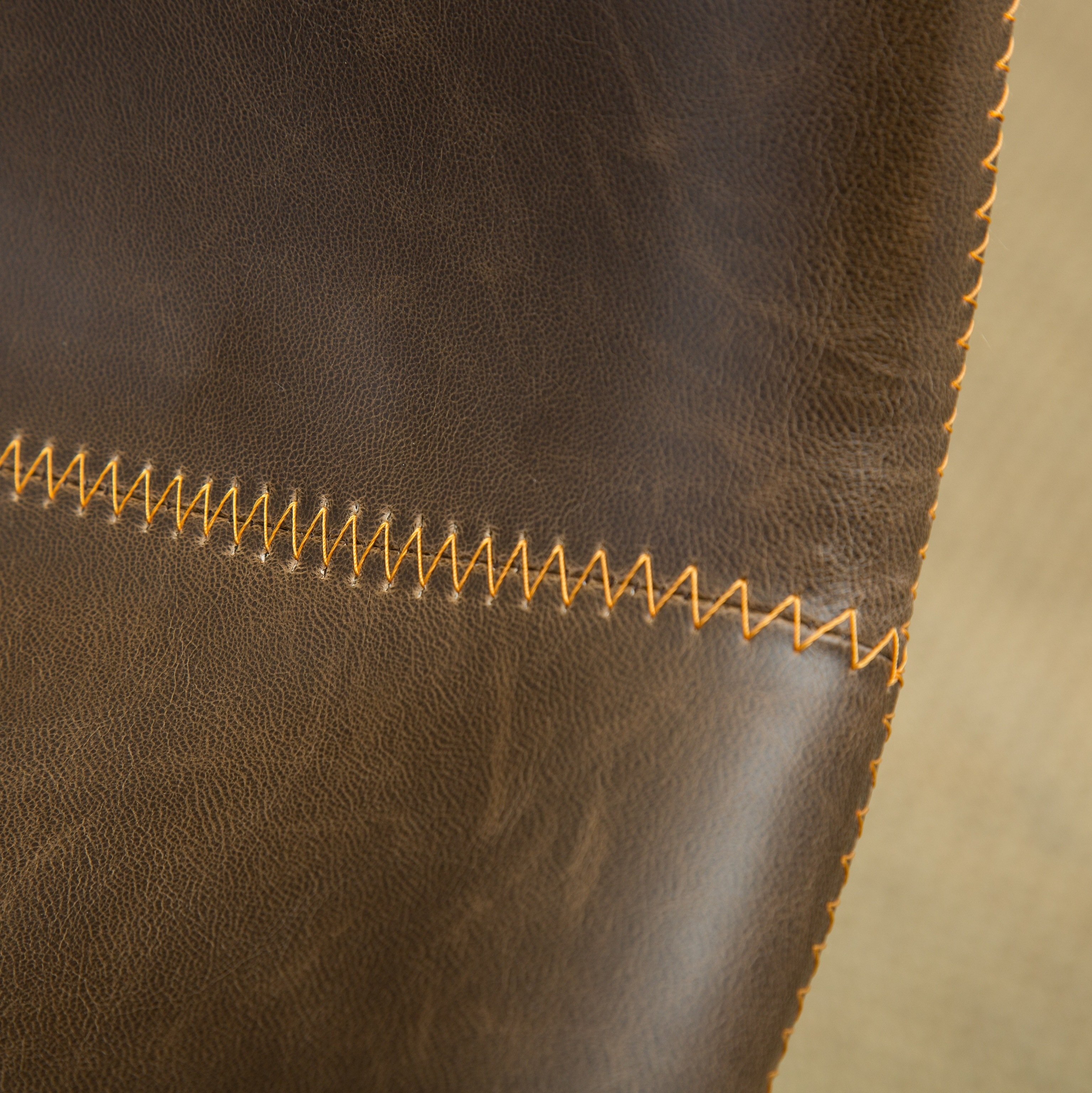 Hand crafted metal dining chairs with bintage PU leather in antique brown color, Set of 2