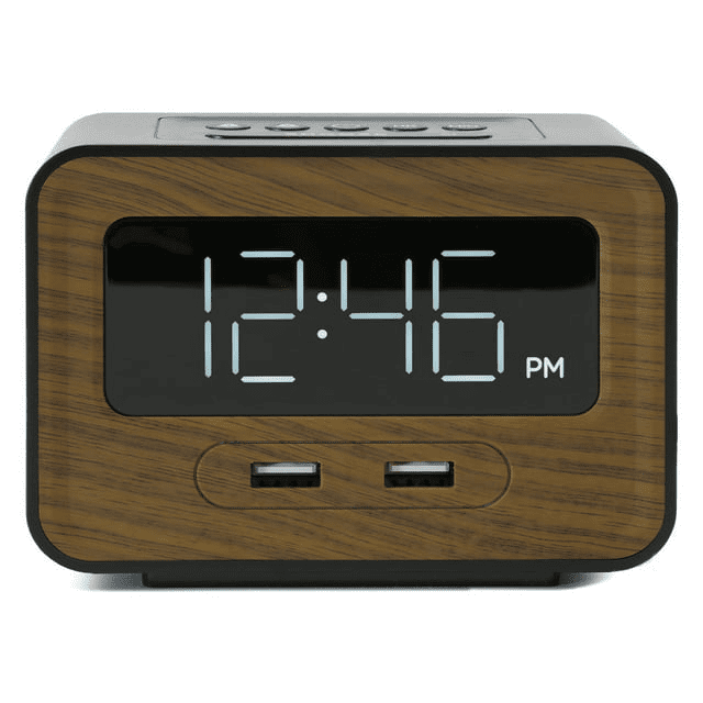 Lumoday Dual USB Charging Station Digital Alarm Clock (Black/Wood)