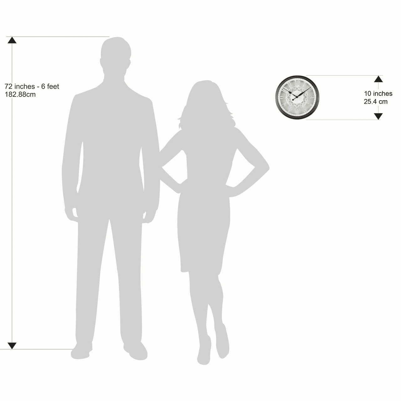 Complement your home's décor by adding this mainstays 10" white cutout wall clock! The clock's frame features a beautifully hand applied oil rubbed bronze finish, which contrasts the white center dial design. Within the frame, radiating arabic numbers rotate around the dial's center moroccan pattern design. The white cutout dial also features hand applied bronze brushing. Satin black hour and minute hands are a striking contrast and are easily visible against the dial. A flat glass lens protects the dial and handset. The clock's quality quartz movement ensures precise timekeeping. This clock would be a great decorative addition to a kitchen, bedroom or home office.