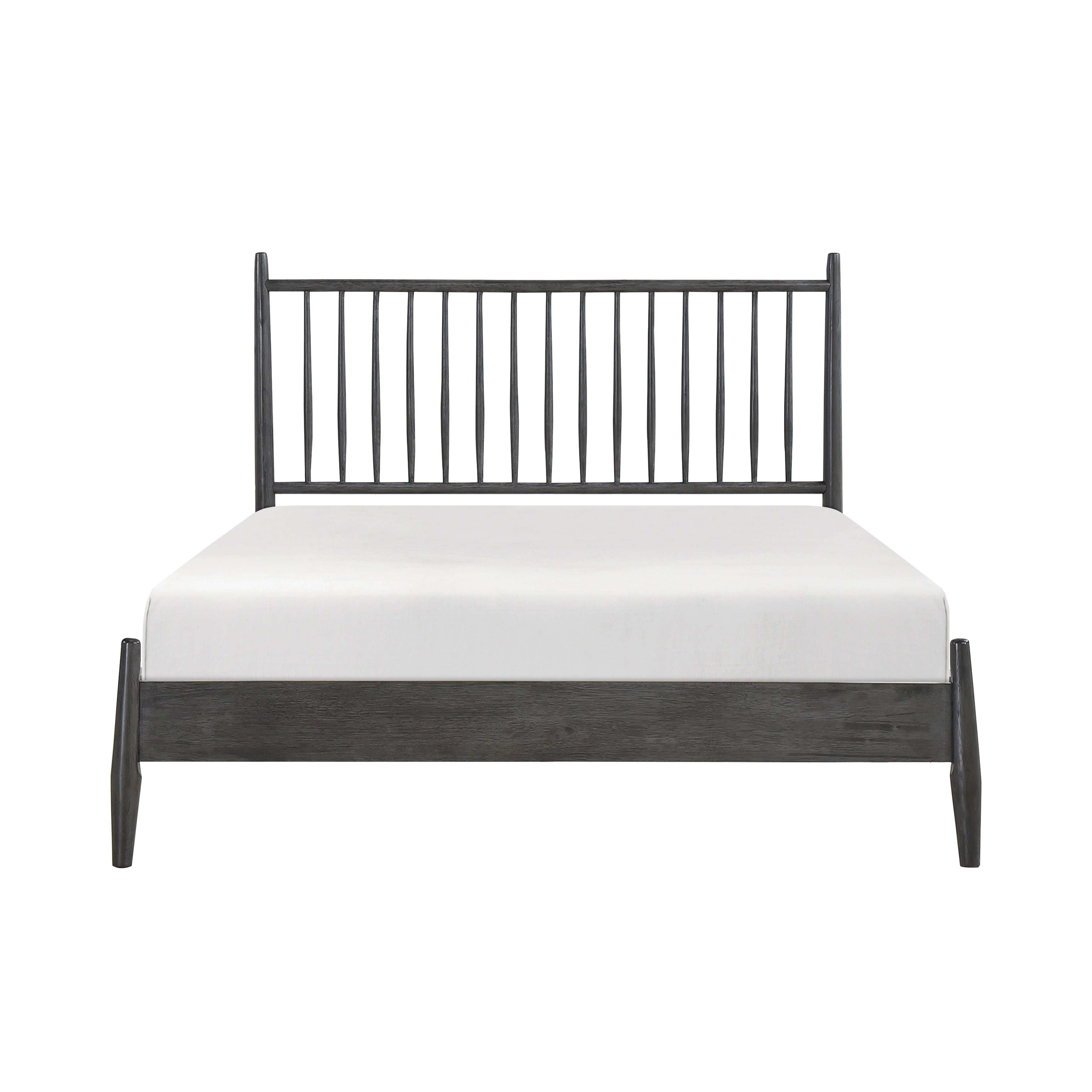 Description & DimensionsWith a look that has its roots firmly planted in Mid-Century Modern design, the Brickell Collection makes for a versatile canvas to create a space that reflects your personal style. The gray finish of the queen bed lends a neutral complement to your decorative preferences. Vertical slats define the headboard, while the low profile of the side rails and footboard create an unobstructed frame for the platform bed. The bed doesn't require a box spring.PRODUCT DIMENSIONS: Overall Dimension: 63.5" x 85.5" x 47"HHeadboard width: 63.5"Headboard height: 47"Footboard width: 63.5"Footboard height: 17"Rail to floor: 7.5"Listing Includes: One Queen Size Platform Bed Only.Mattress: Not included.Simple Assembly Require.