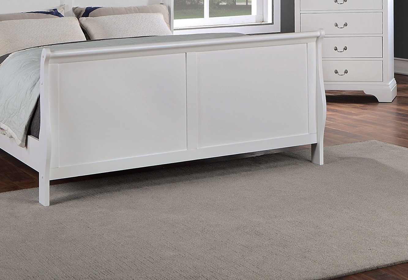 Product DescriptionProduct Description:-Smooth surfaces, curved panels and detailed lines drape this bedroom set bathed in a White color. This set features a sleigh bed and storage accessories with charming accent door handles offering a French-inspired bedroom décor.