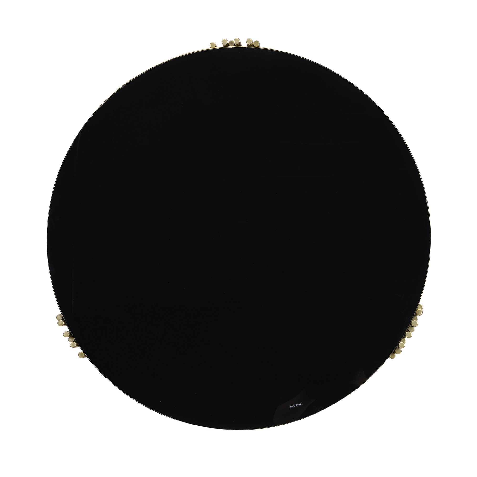 Circular Metal Drum Base: The coffee table is supported by a circular metal drum base with a gold finish. The base provides stability and a luxurious contrast to the black mirror top, enhancing the table's overall style.