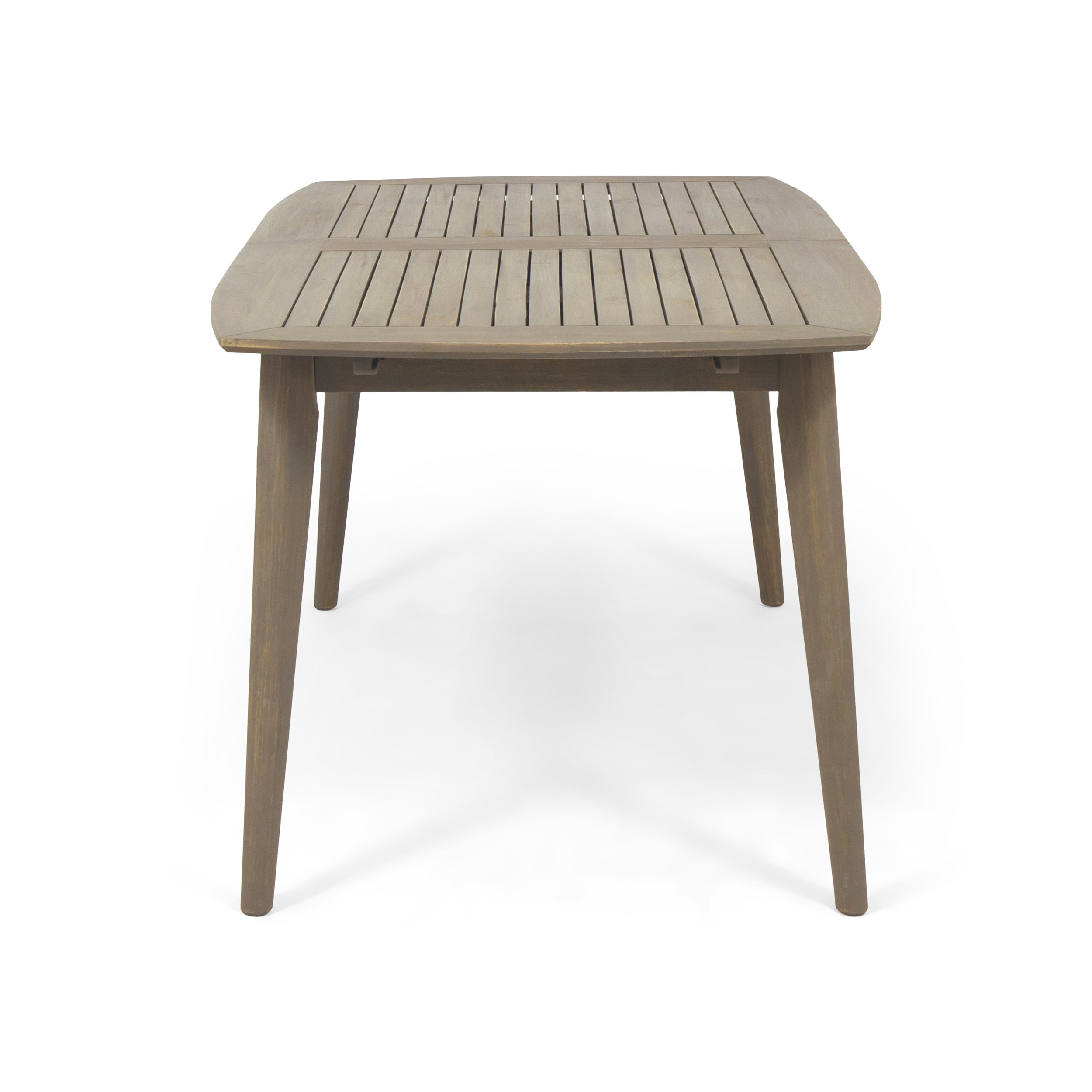 Become the master of hosting unforgettable outdoor get-togethers with our gorgeous and practical dining table. This table is extremely convenient with its expandable feature, allowing you to accommodate unexpected companies. With ample space for all of your guests, this table is the perfect addition to any outdoor space. Made with smooth acacia wood, this outstanding piece features a classic slatted tabletop that is supported by sturdy tapered legs. From marvelous evening dinners to exciting mor