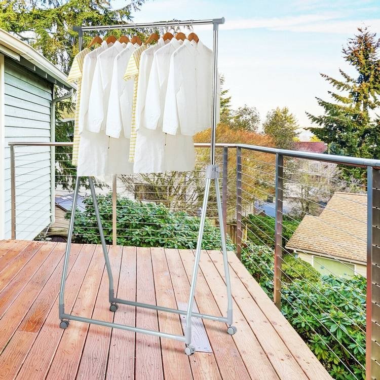 • Folding Extendable Metal Garment Rack Clothes Hanging Rod with Lockable Wheels