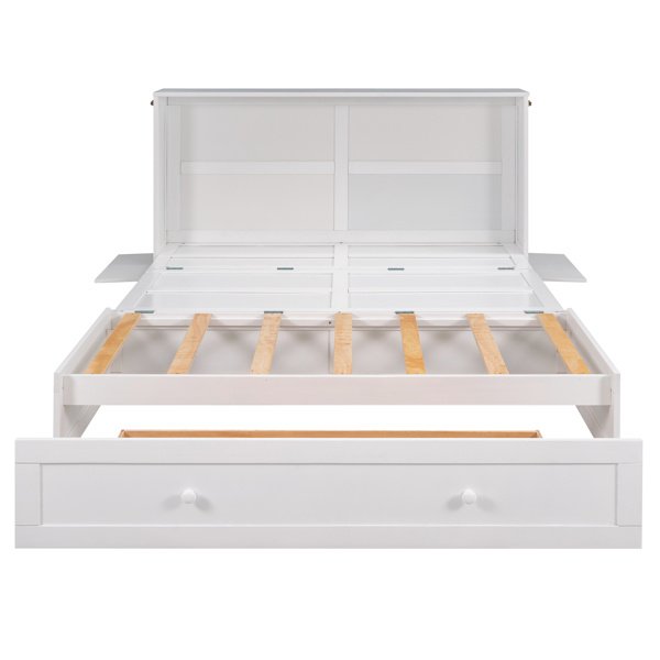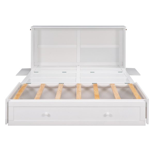 Queen Size Mobile Murphy Bed with Drawer and Little Shelves on Each Side,White