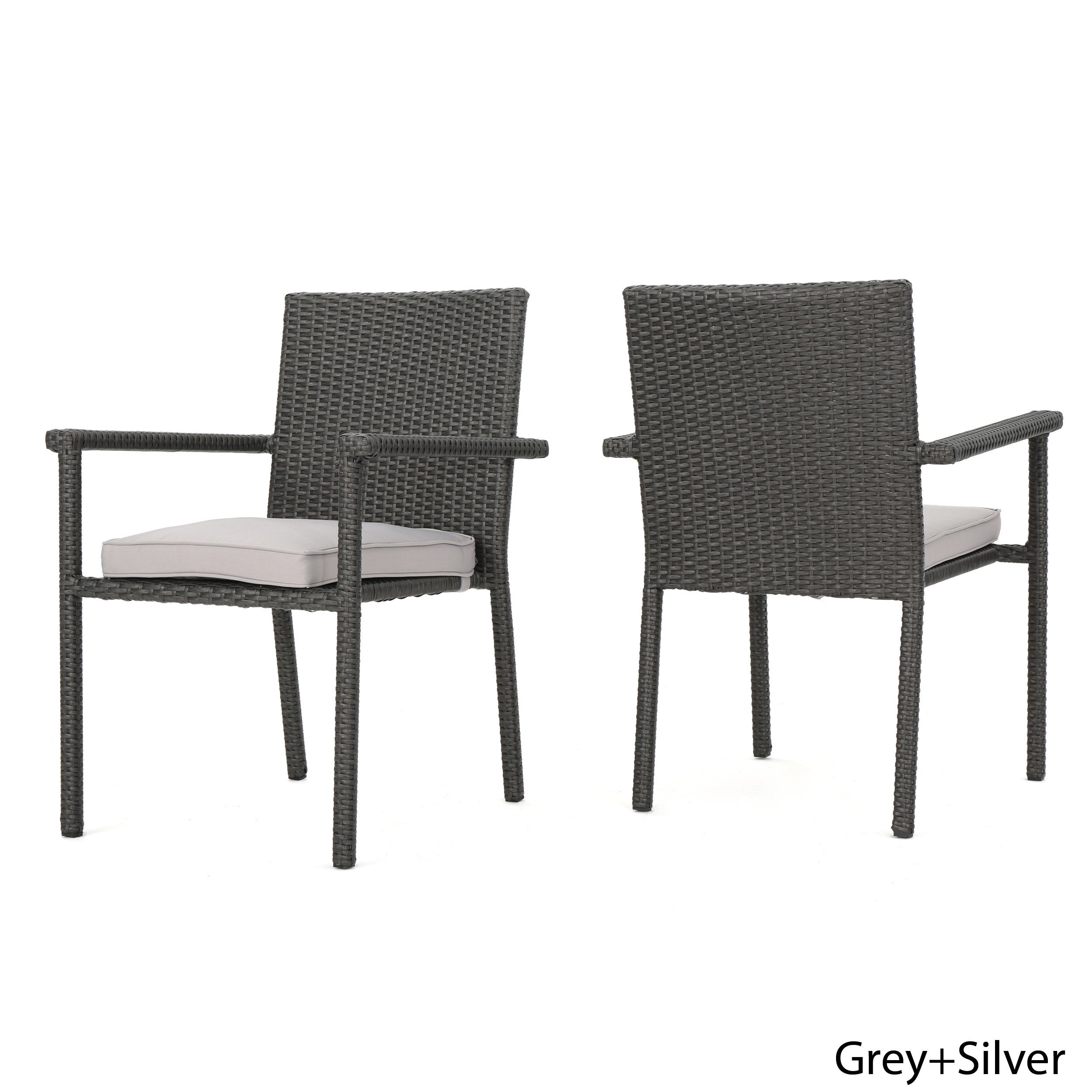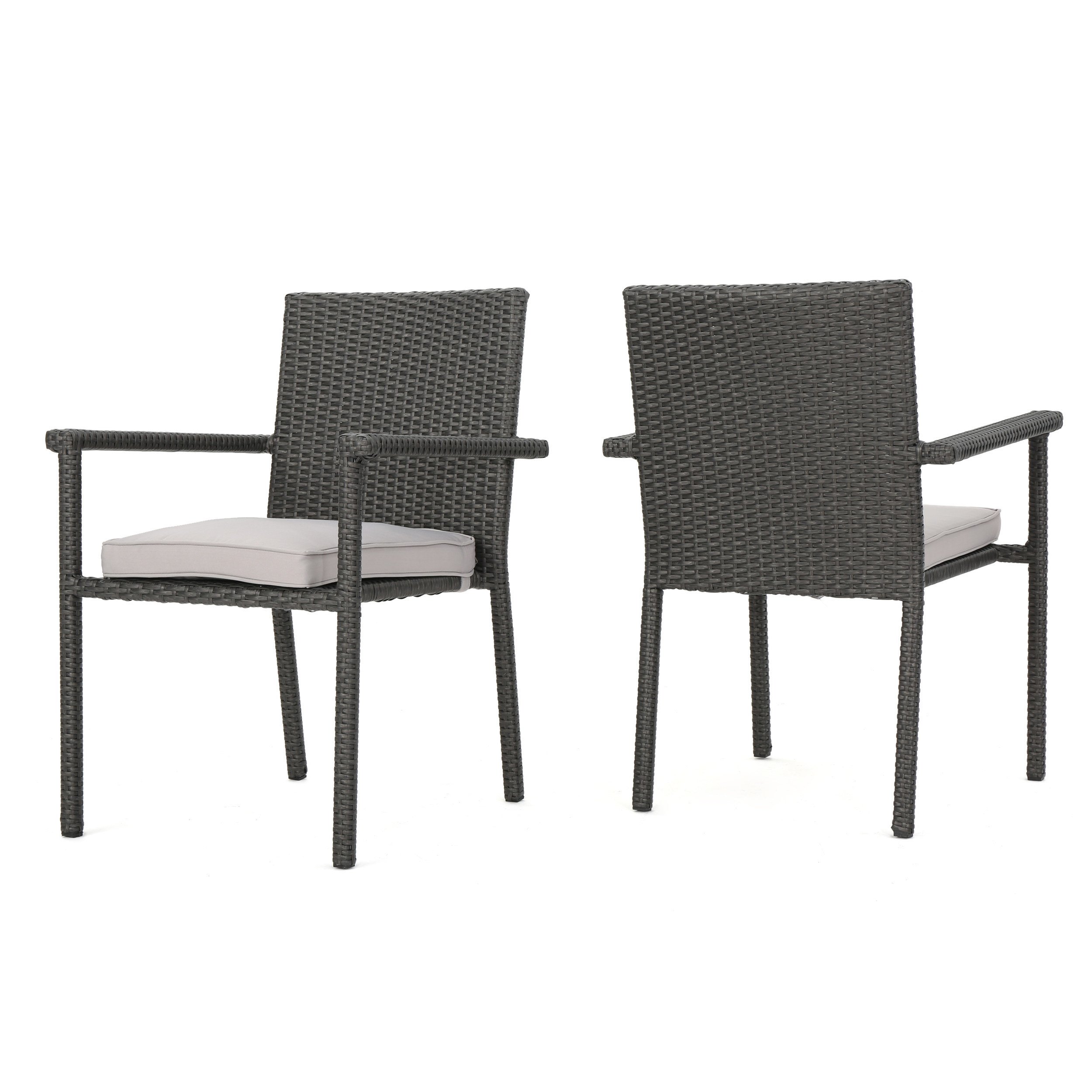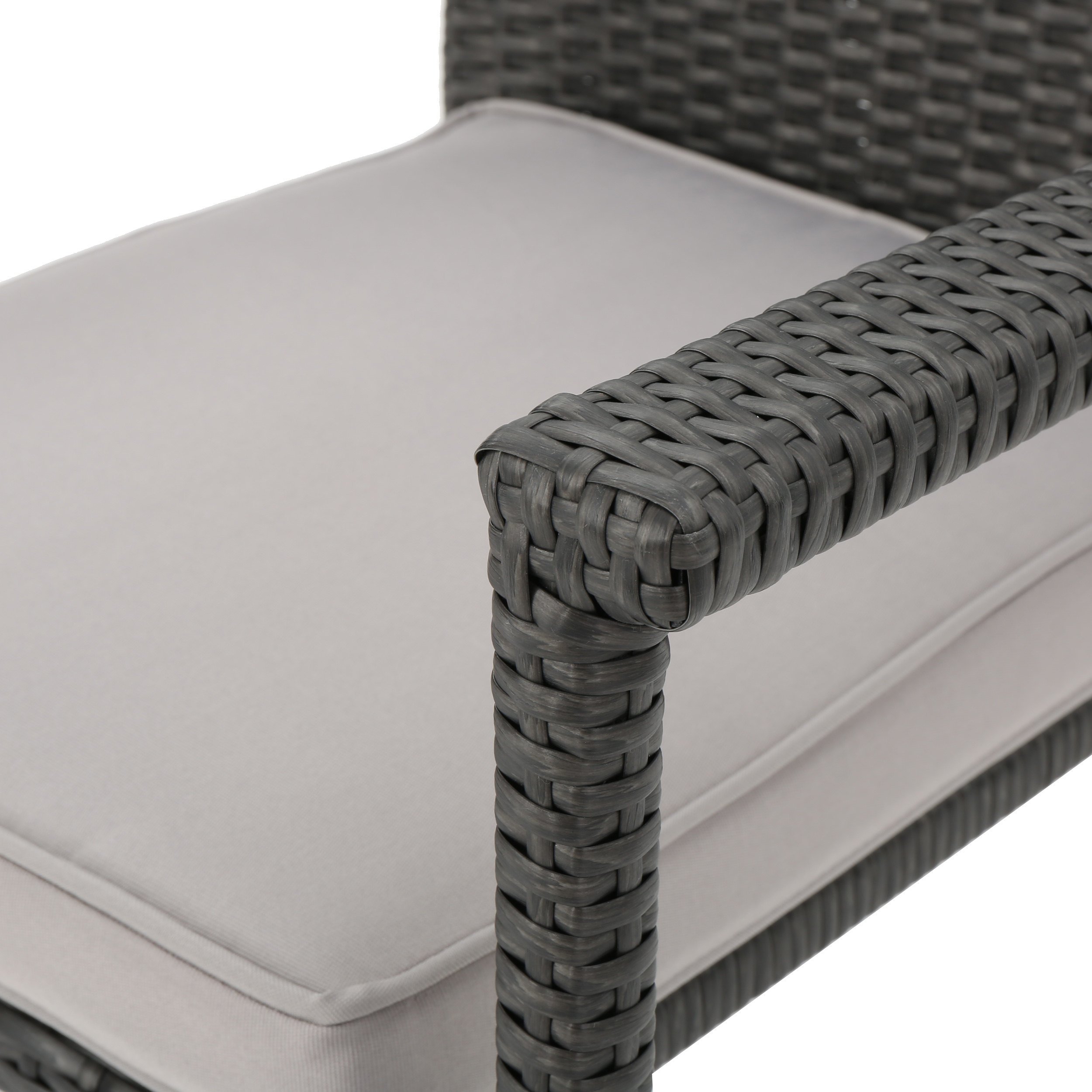 Premium Material: Constructed with polyethylene wicker and iron frames, these chairs boast long-lasting resilience and a versatile grey finish, adding timeless elegance to any patio.