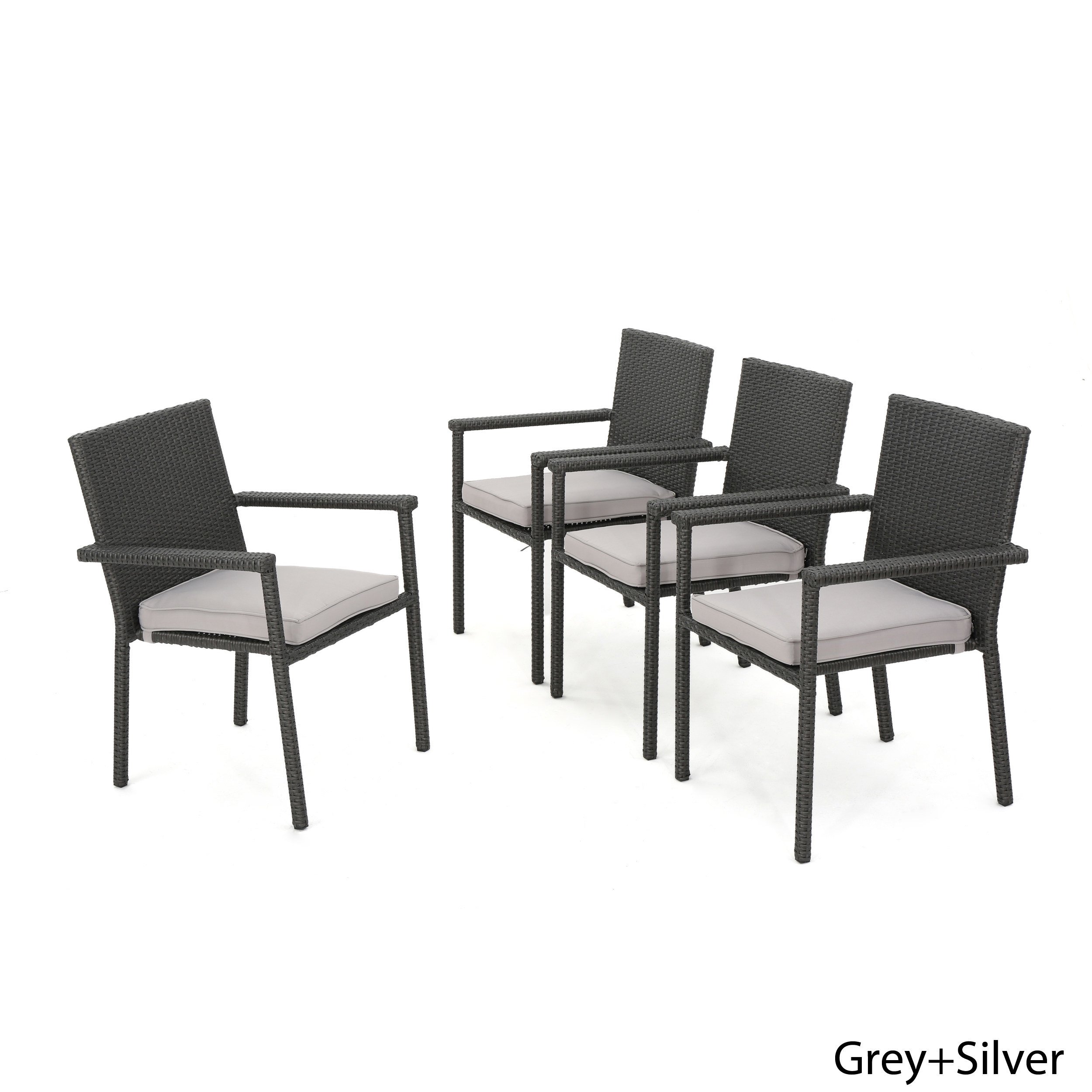 Stylish and Comfortable: Our set of four outdoor dining chairs is crafted from top-rated wicker, featuring water-resistant cushions upholstered in 100% polyester fabric, ensuring a blend of style, comfort, and durability.