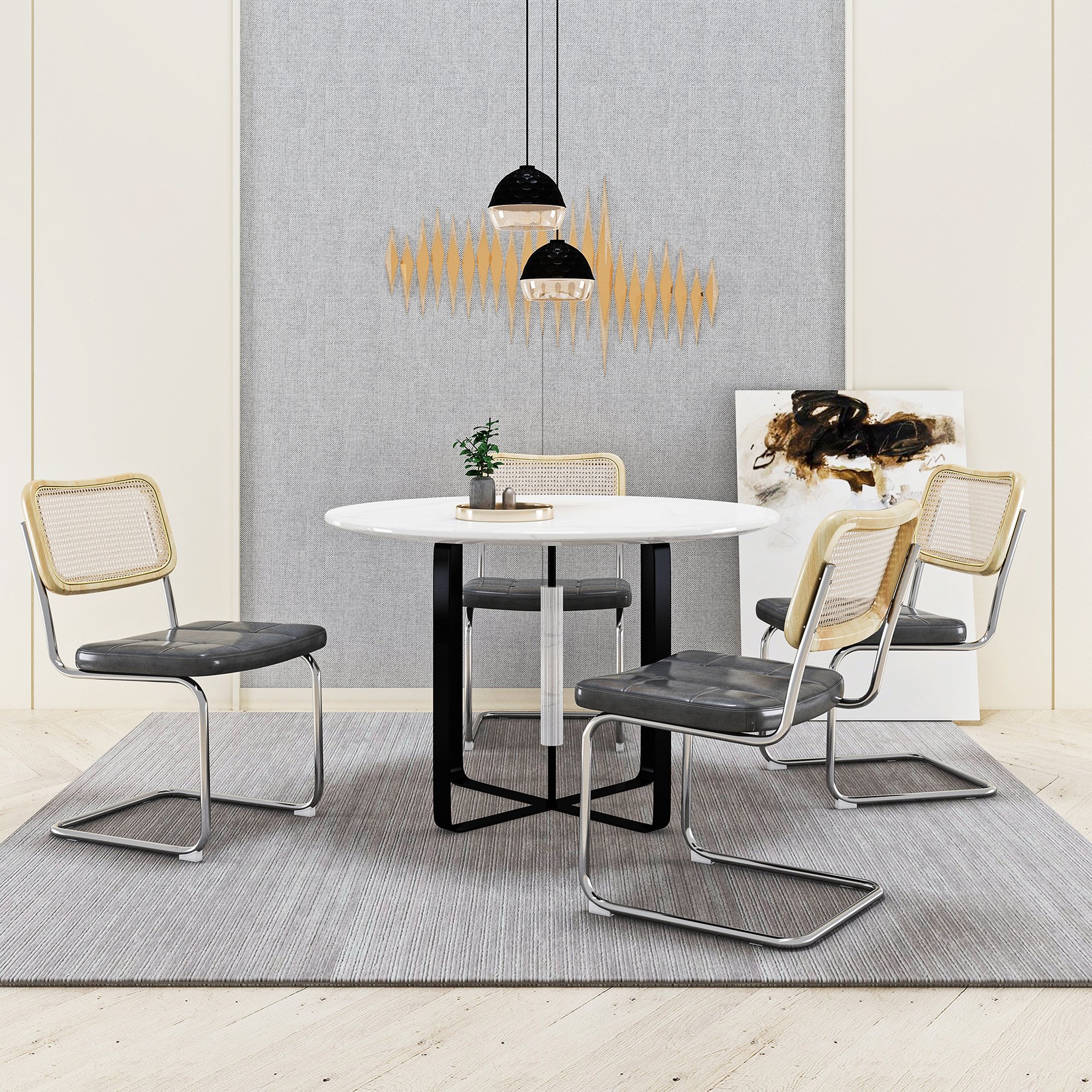 Set of 4, Leather Dining Chair with High-Density Sponge, Rattan Chair for Dining room, Living room, Bedroom, Gray