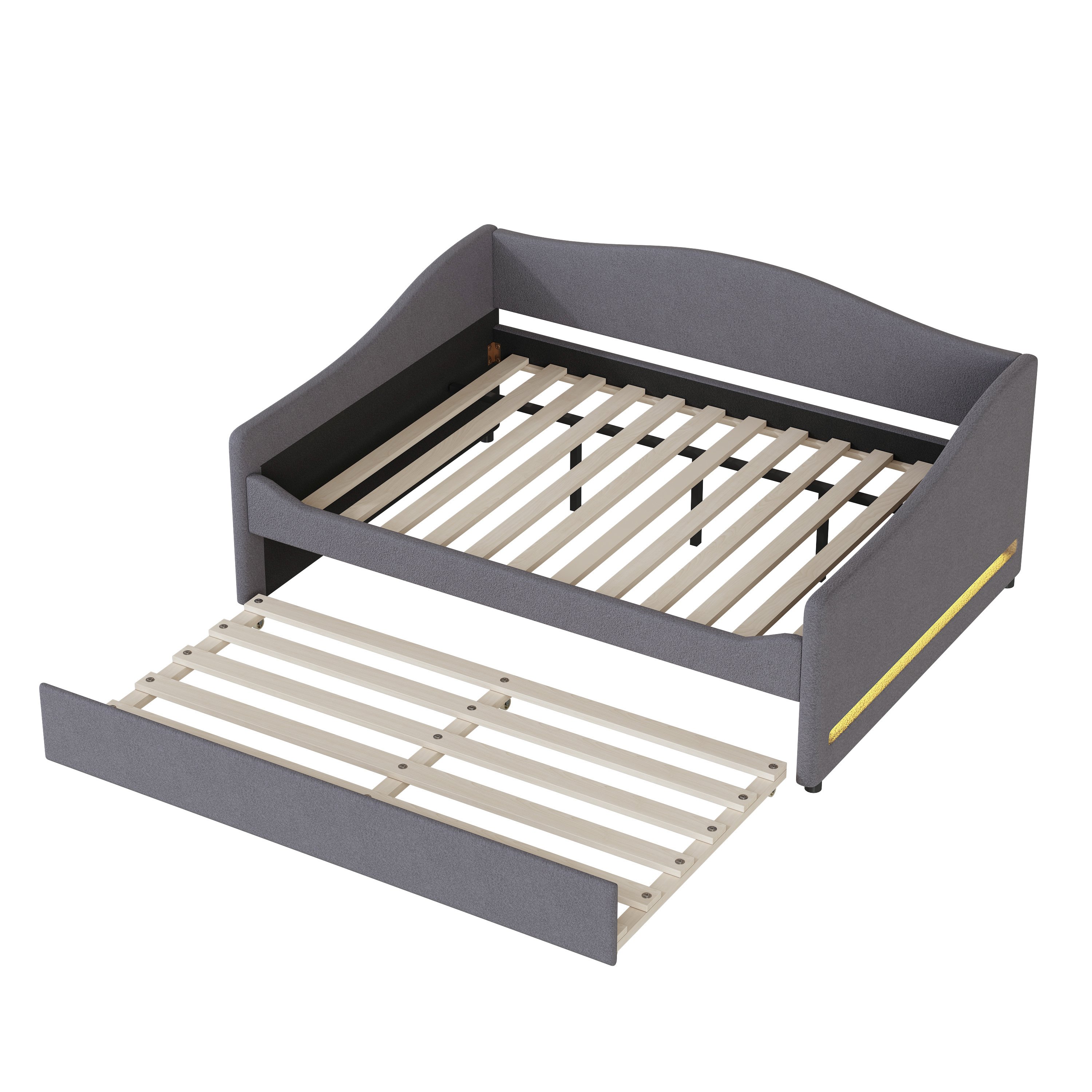 Home > Teddy Fleece Full Size Upholstered Daybed with Light and Trundle, Gray