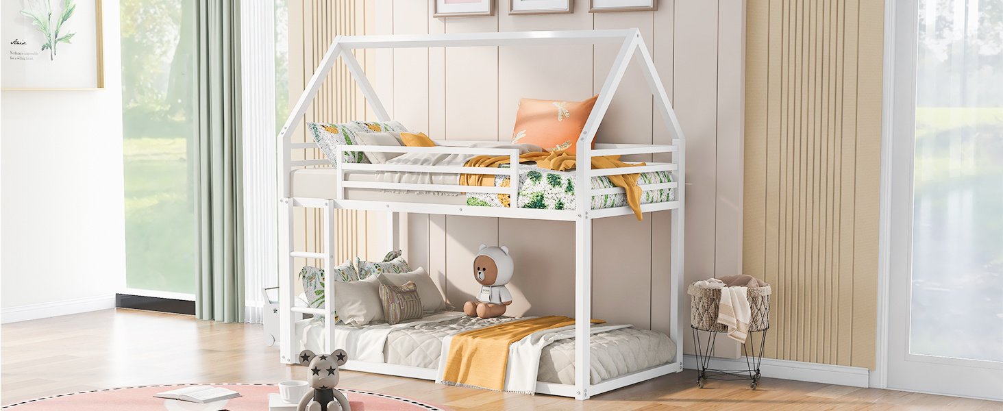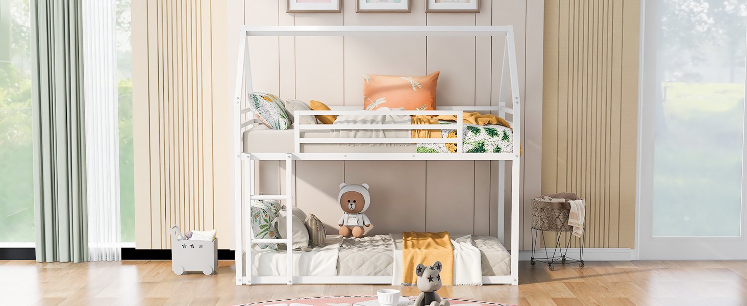 This is an all-time favorite when it comes to a space-saving sleeping solution! Crafted with strong and solid metal, the house bunk bed introduces forms and functions to the bedroom with its streamlined silhouette. With a house appeal, this bunk bed has a lower height than the average bunk bed, making it ideal for smaller spaces. Built with your little one's needs in mind, this bunk bed comes with a secured built-in ladder which can be put on left or right.