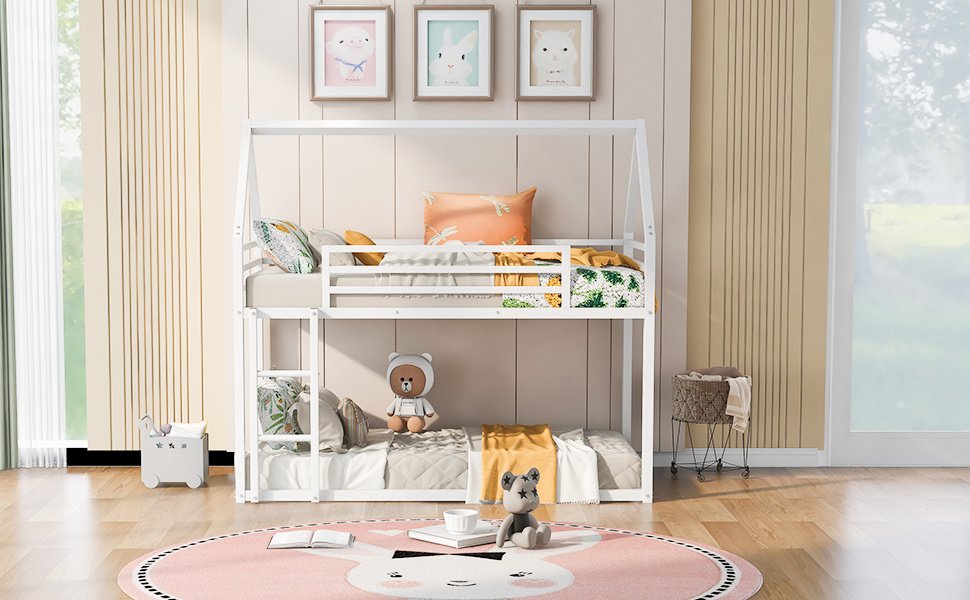2.[Sturdy Frame] Made of solid metal frame, the house bunk bed is durable and reliable for you bedroom.Surrounding with high guardrail on upper bed, no need to worry about safety when sleep alone.
