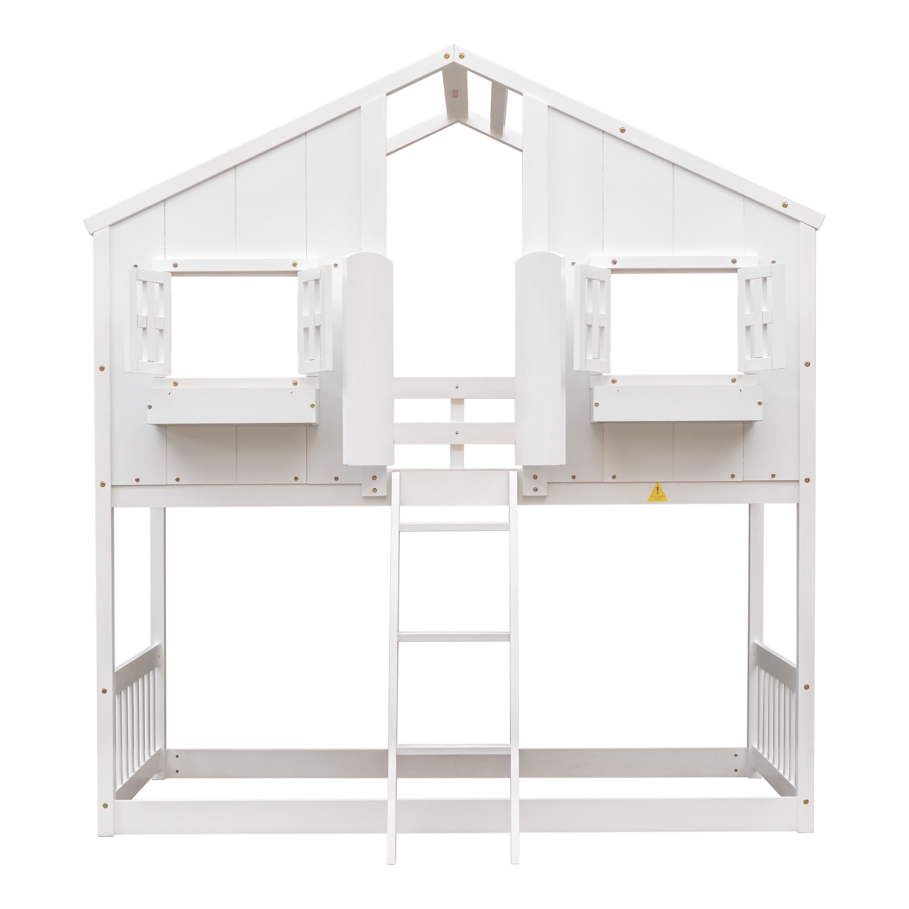 Twin over Twin House Bunk Bed with Roof , Window, Window Box, Door