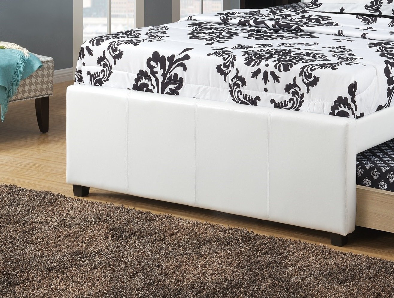 Home > Twin Size Bed w/ Trundle Slats White Faux Leather Upholstered Plywood Kids Youth Bedroom Furniture Wooden Slats 1pc Bed