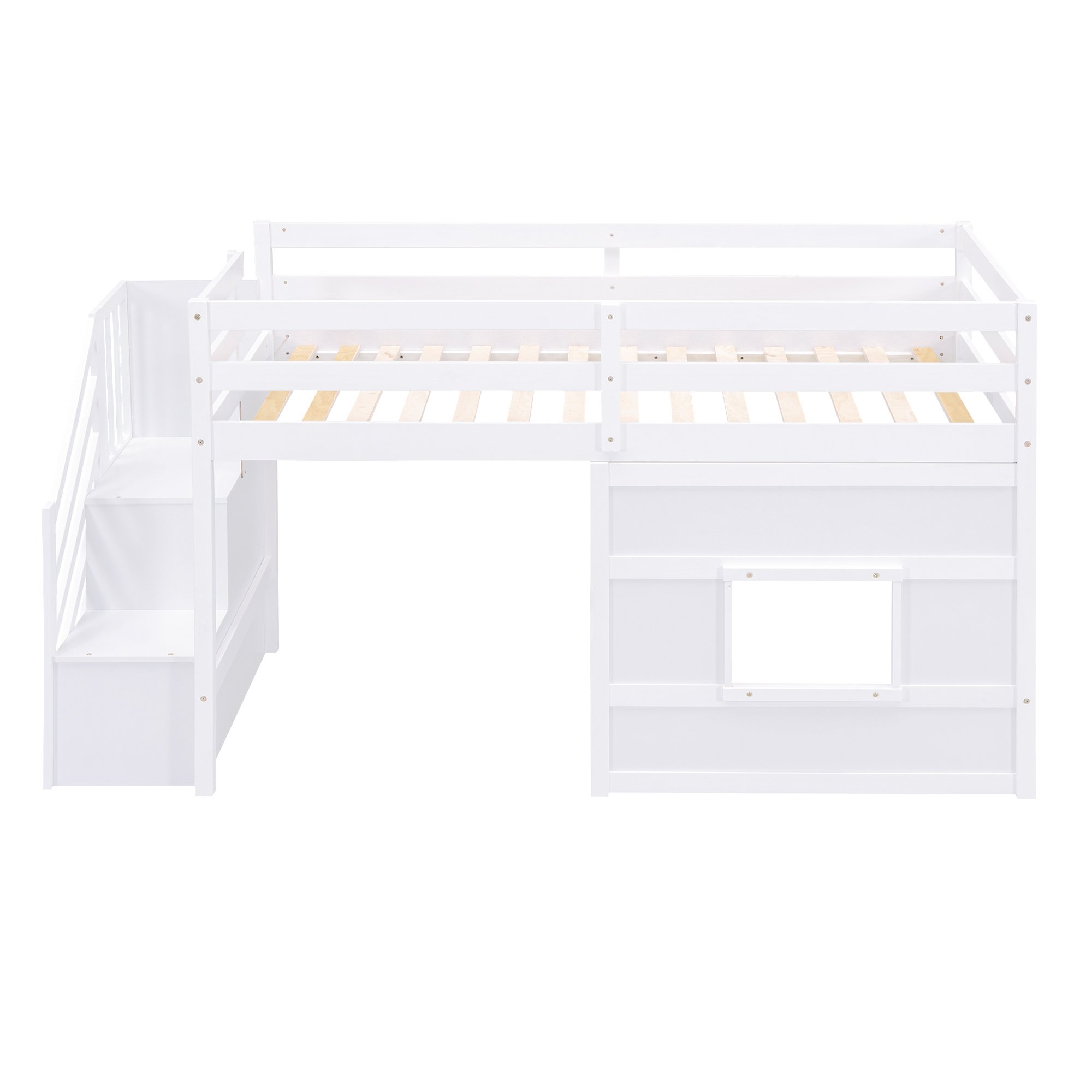 Twin Size Loft Bed with Storage Staircase and Window