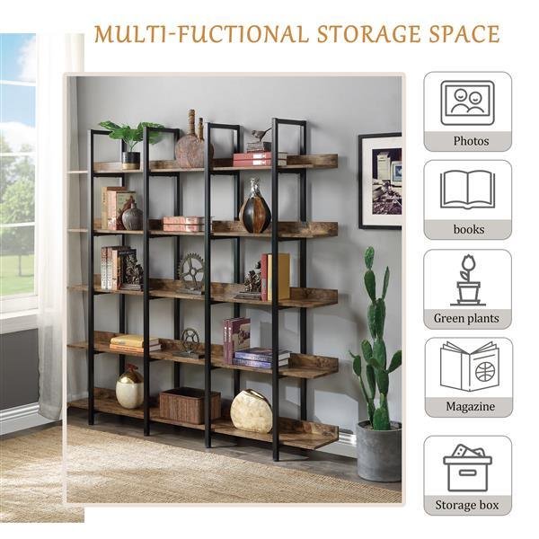 Home > [VIDEO] 5 Tier Bookcase Home Office Open Bookshelf, Vintage Industrial Style Shelf with Metal Frame, MDF Board