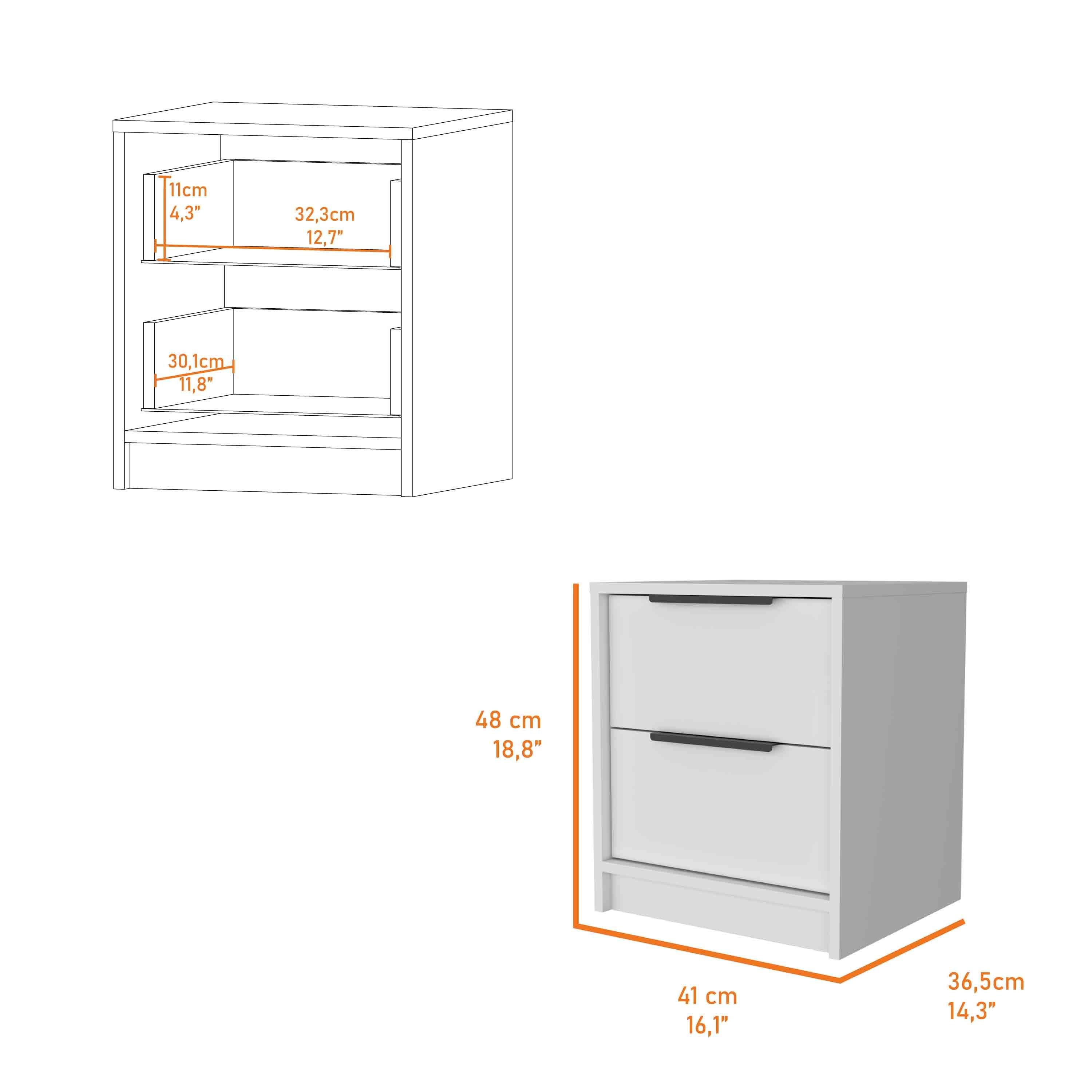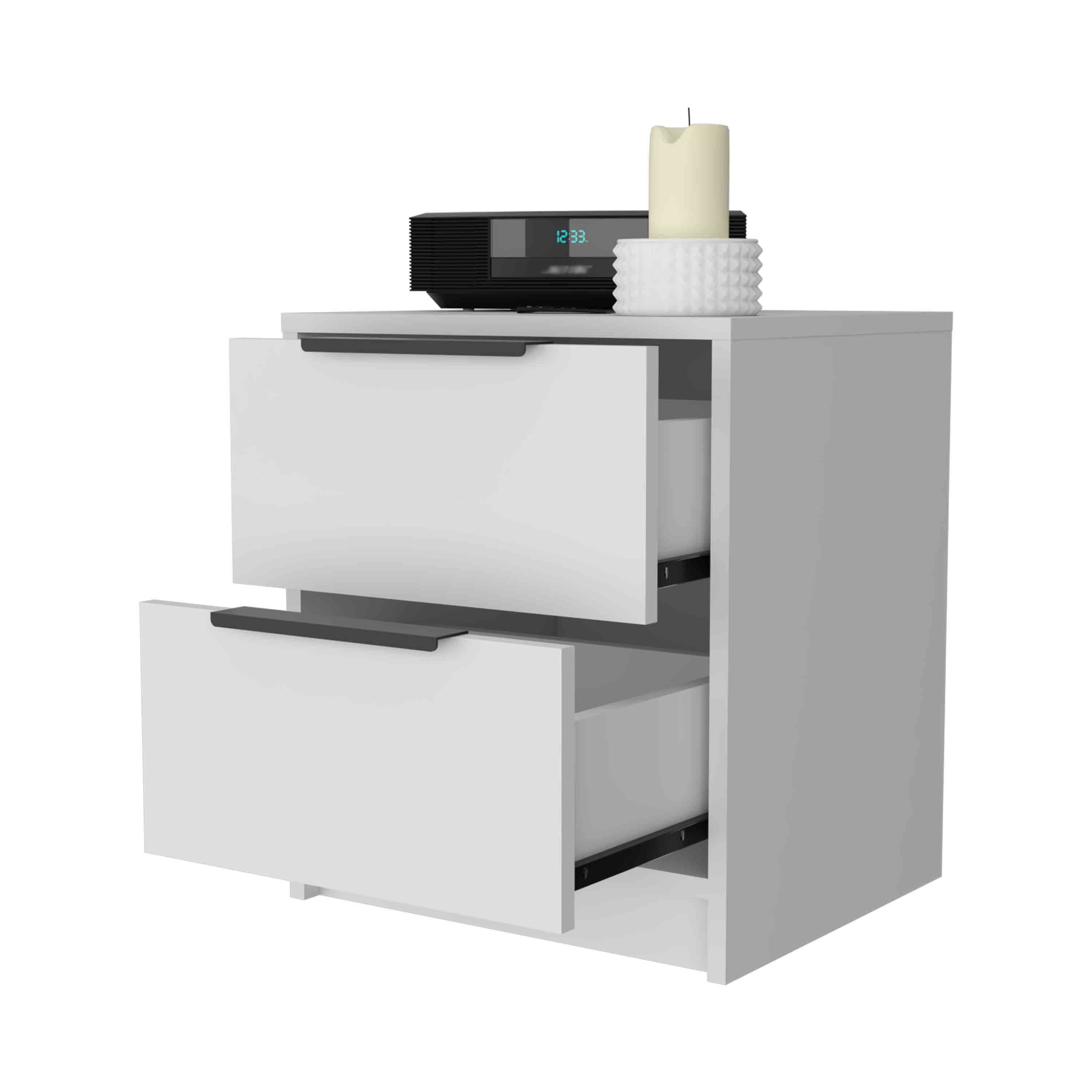 FM FURNITUREFM FURNITURE Washington Nightstand, Two Large Drawers ,White