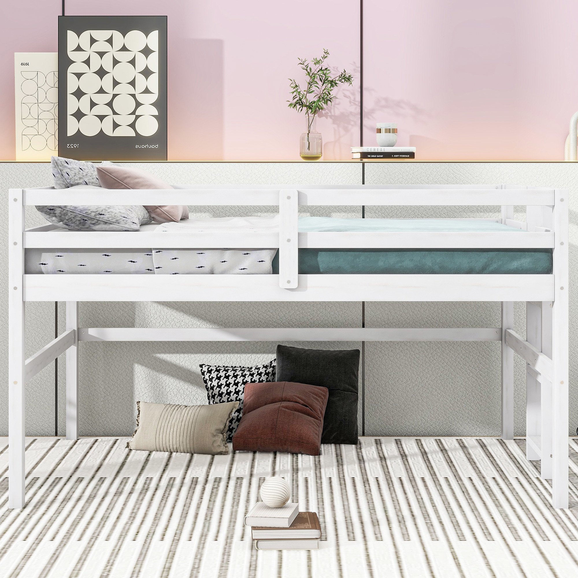 2.[Antique Gray/White Design] Featuring the antique Gray/White design, the loft bed adds a rustic, country feel to your room.